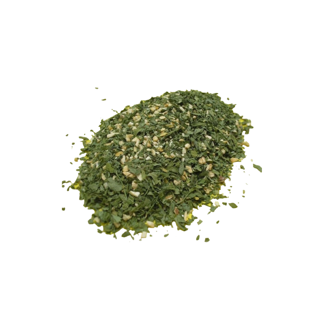 Mezcla lista de ajo y perejil deshidratados. Sabor instantáneo para milanesas y papas.